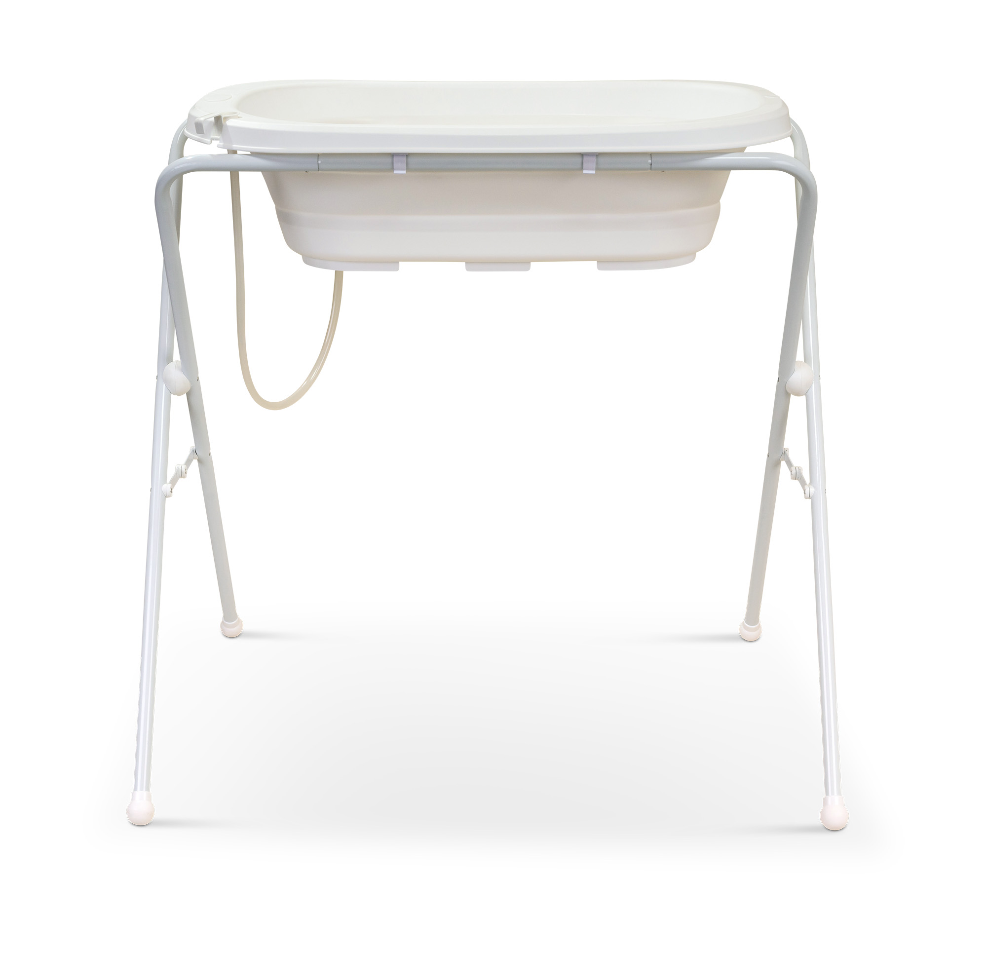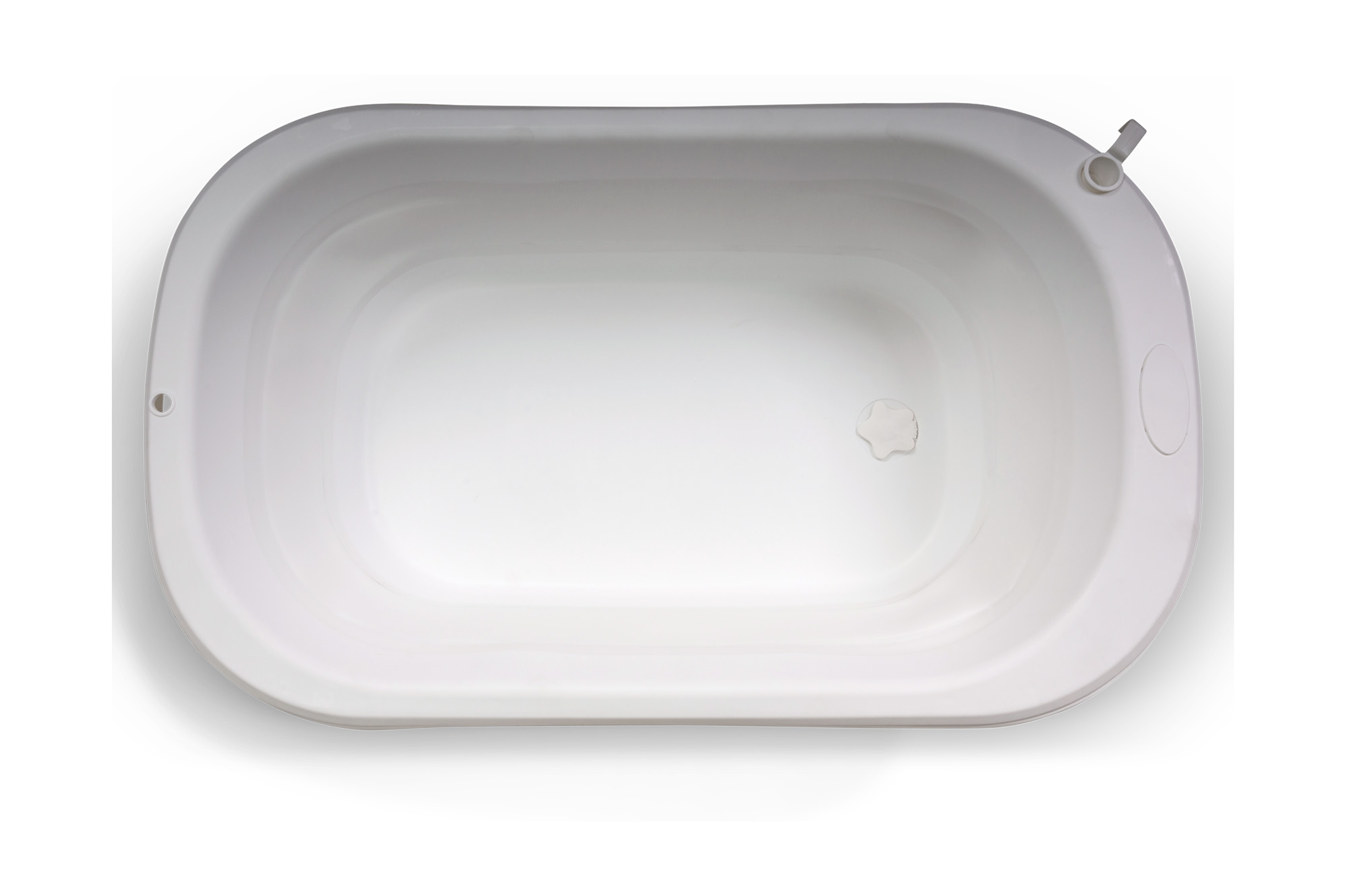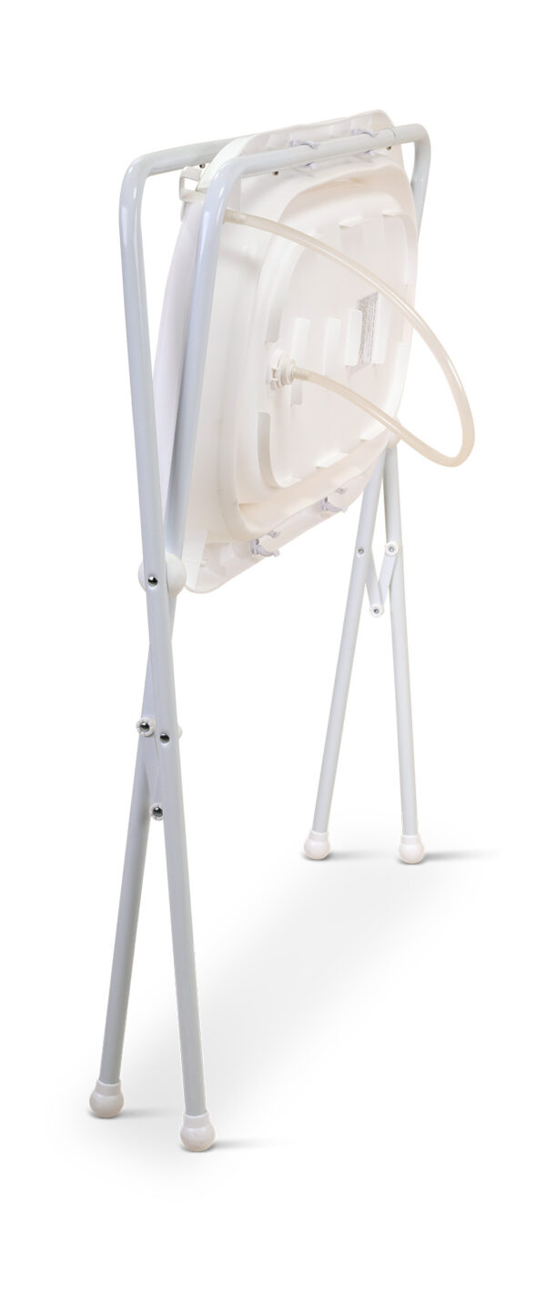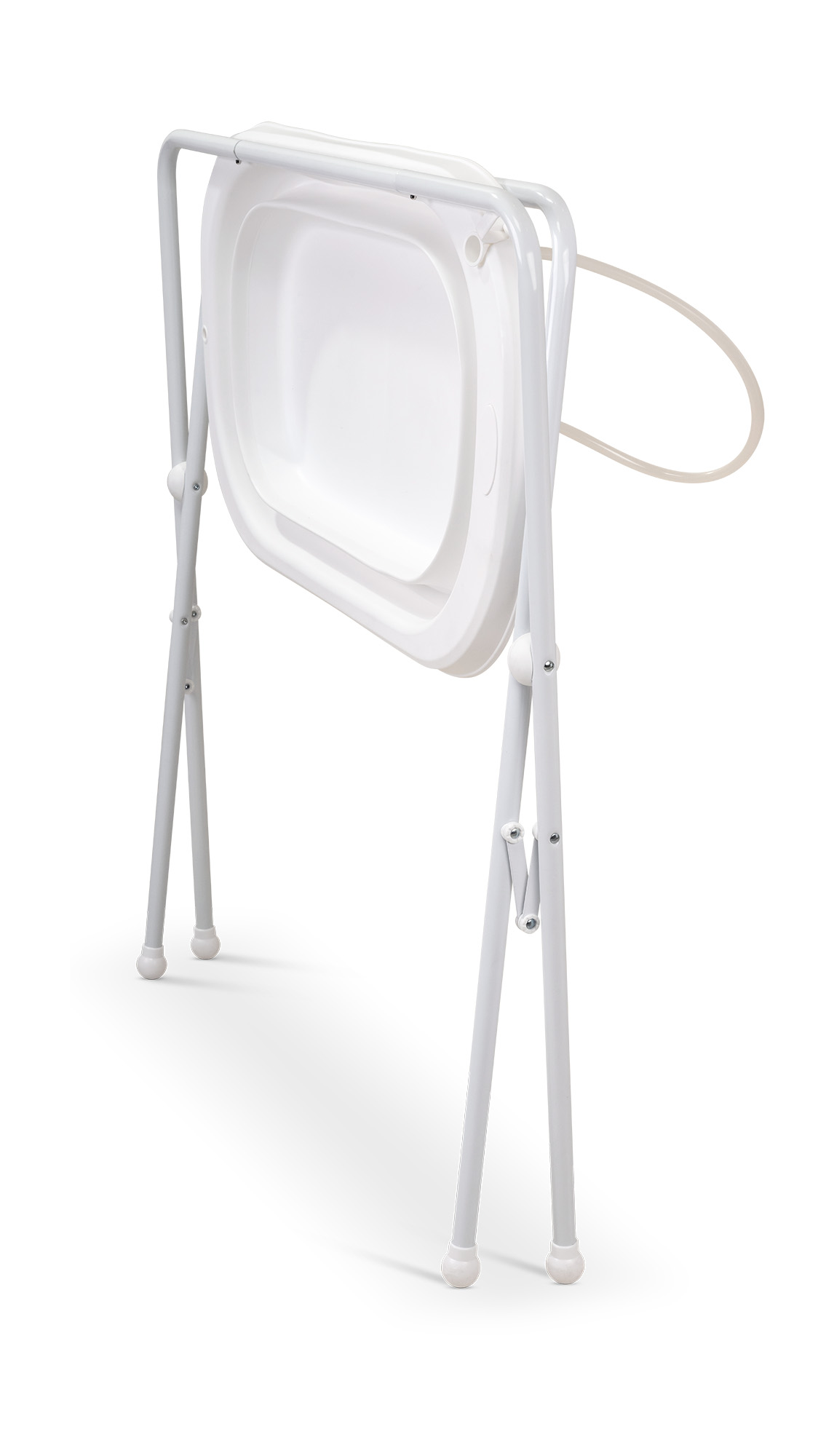 פטנט בלעדי של קיפול דק בצורה פשוטה ביותר, האמבטיה והמעמד מתקפלים יחד וחוסכים מקום.