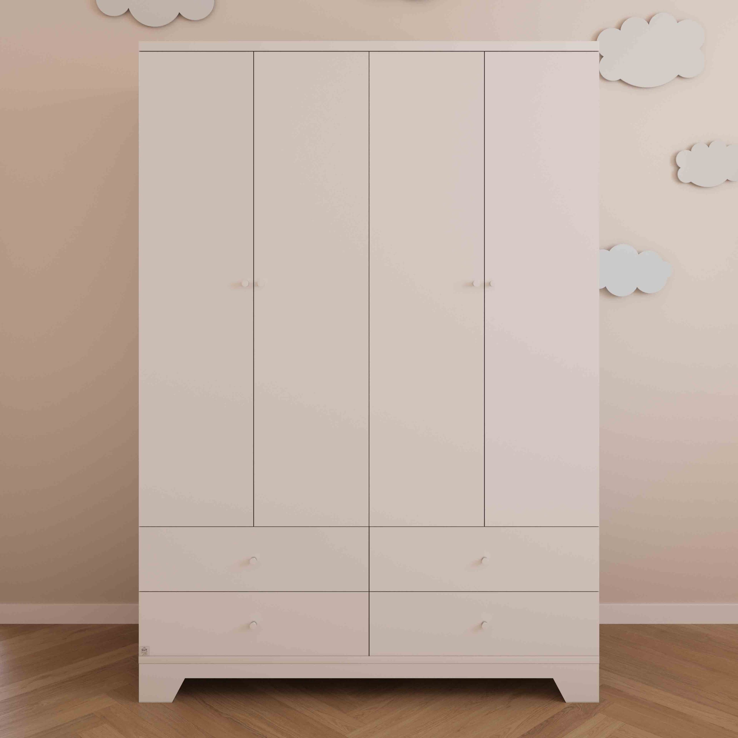 תכולה פנימית: ארון 4 דלתות בעיצוב אלגנטי בעל תא לתליית ביגוד ושטחי אחסון נפרדים.