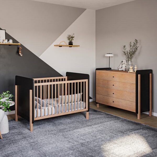 חדר השינה עשוי מחומרים באיכות גבוהה תוך שמירה על גימור ללא פשרות. השידה בעלת עיצוב קלאסי קליל ונקי, מגיעה עם 4מגירות רחבות, מגירה עליונה מחולקת. השידה מחוברת בצדדיה לרגלים עשויות עץ בוק המעניקות מראה מרשים וייחודי. מותקנות בה מסילות טריקה שקטנה אוטומטית. זוהי מיטה שגדלה ביחד עם הבייבי ומגיעה עם סולמות מעבר וניתנת לשינוי באופן פשוט וקל. ברגי המיטה פנימיים ואינם נראים לעין ובסיס המיטה מתכוונן ל- 3 מצבי גובה.