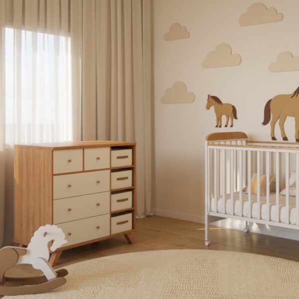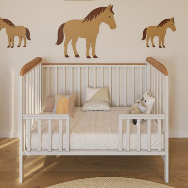 הכירו את דגם פנדה, מיטת תינוק מהממת עם גימורים עדינים ושילוב עץ טבעי שמעניק לו טאצ׳ כפרי מושלם. המיטה מגיעה עם אנטי בייט – סולמות המיטה מוגנים על ידי פס פלסטיק השומר על מראה המיטה כאשר התינוק מגדל שיניים ונושך את הסולם וגלגלי סיליקון חזקים ועמידים בעלי מעצור.