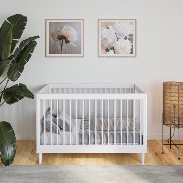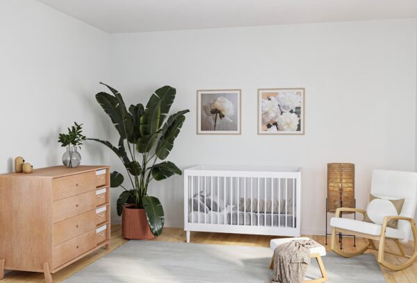 מיטת תינוק ומעבר, בעיצוב סקנדינבי המשלבת עץ מלא וצבע לבן. מיטת התינוק בעלת תחתית 4 שלבים להתאמת גובה המזרן בהתאם לגדילת התינוק. זוהי מיטה שגדלה ביחד עם הבייבי ומגיעה כולל קיט סולם מעבר הכלול במחיר המיטה