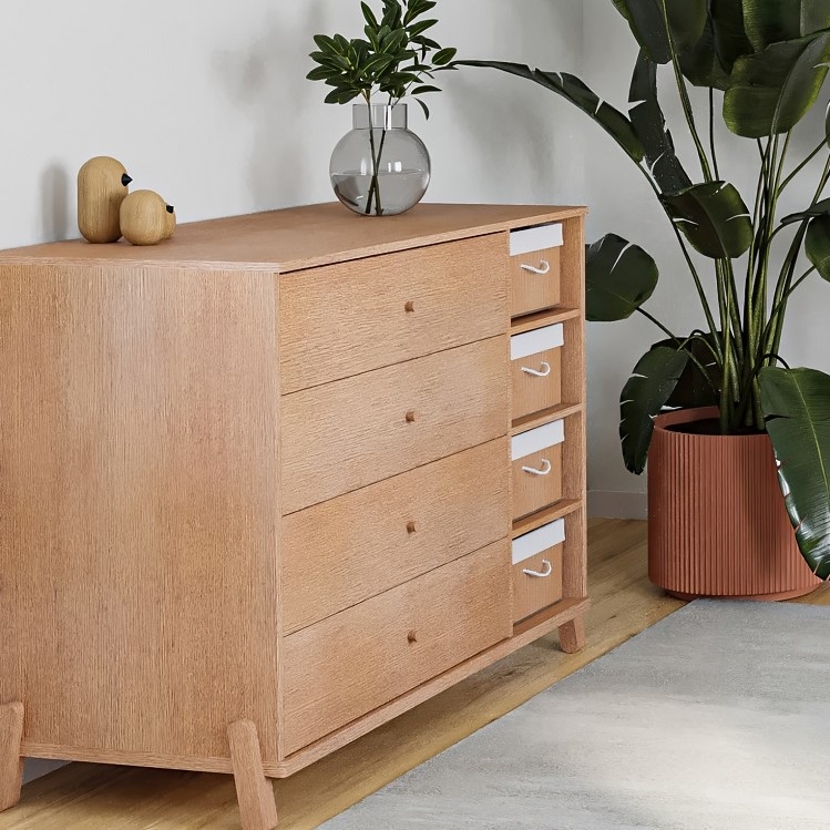 העיצוב הקלאסי של חדר שינה מילאנו הופך אותו לבחירה הטובה ביותר, עם גימור אסתטי ומוקפד. השידה מאובזרת במסילות נסתרות טריקה שקטה אוטומטיות, רגליים מעוצבות עשויות עץ בוק מלא ו4 מגירות שילוב של 4 סלסלות המוסיפות סטייל ושיק ייחודי. הגוון הלבן בשילוב צבע עץ טבעי מעניק לה מראה חדיש ומיוחד.