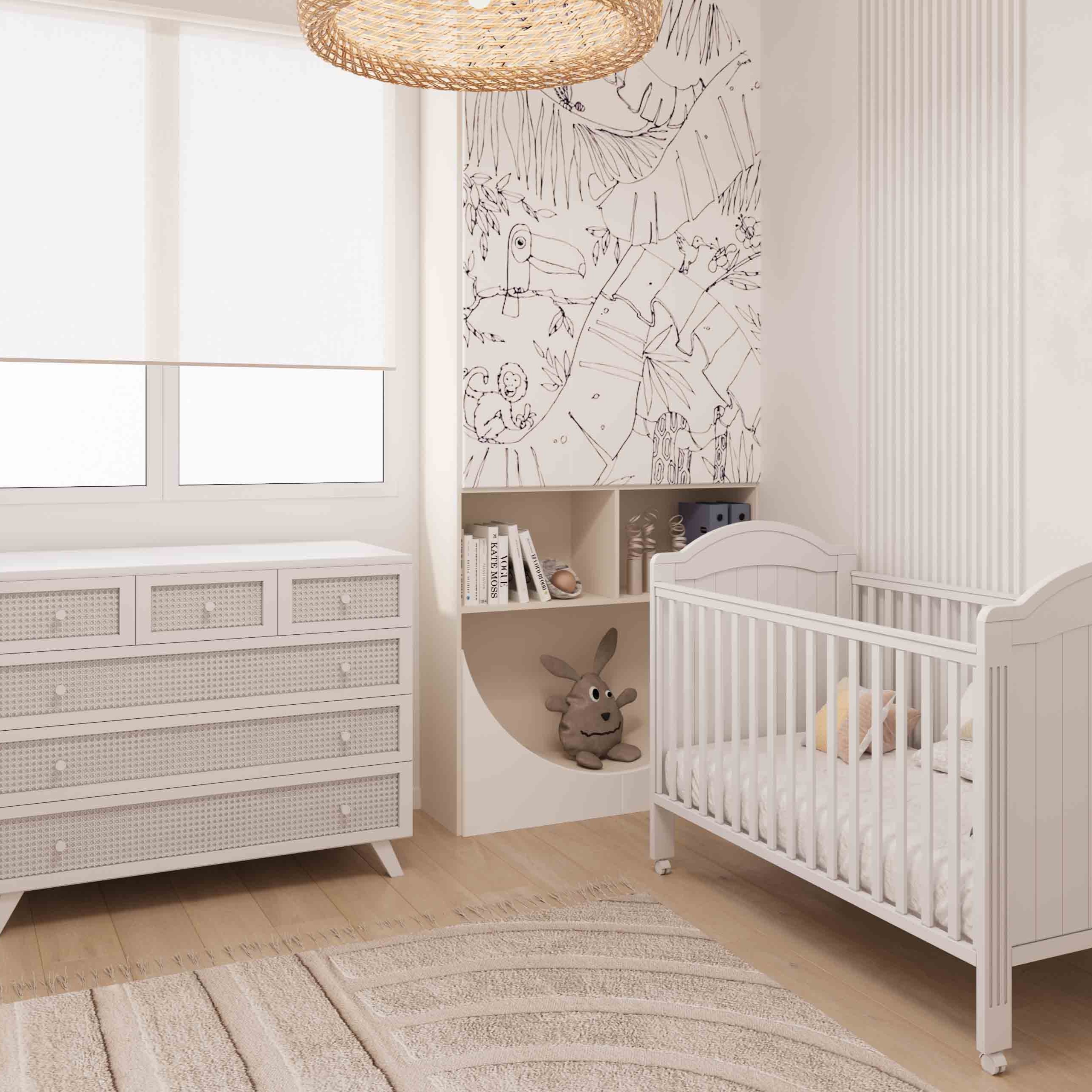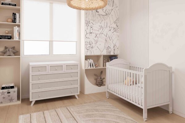 שידת אחסנה קאייפטאון בשילוב ראטן יכול להוסיף מראה חם, טבעי ומזמין לחלל של הקטן שלכם. ראטן, שהוא חומר טבעי ועמיד, מתאים במיוחד לעיצוב חדרי תינוקות בזכות התחושה האורגנית והנעימה שהוא מביא.