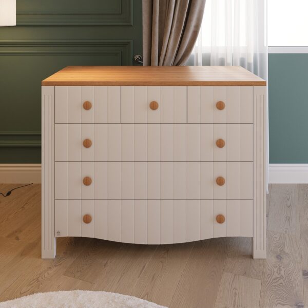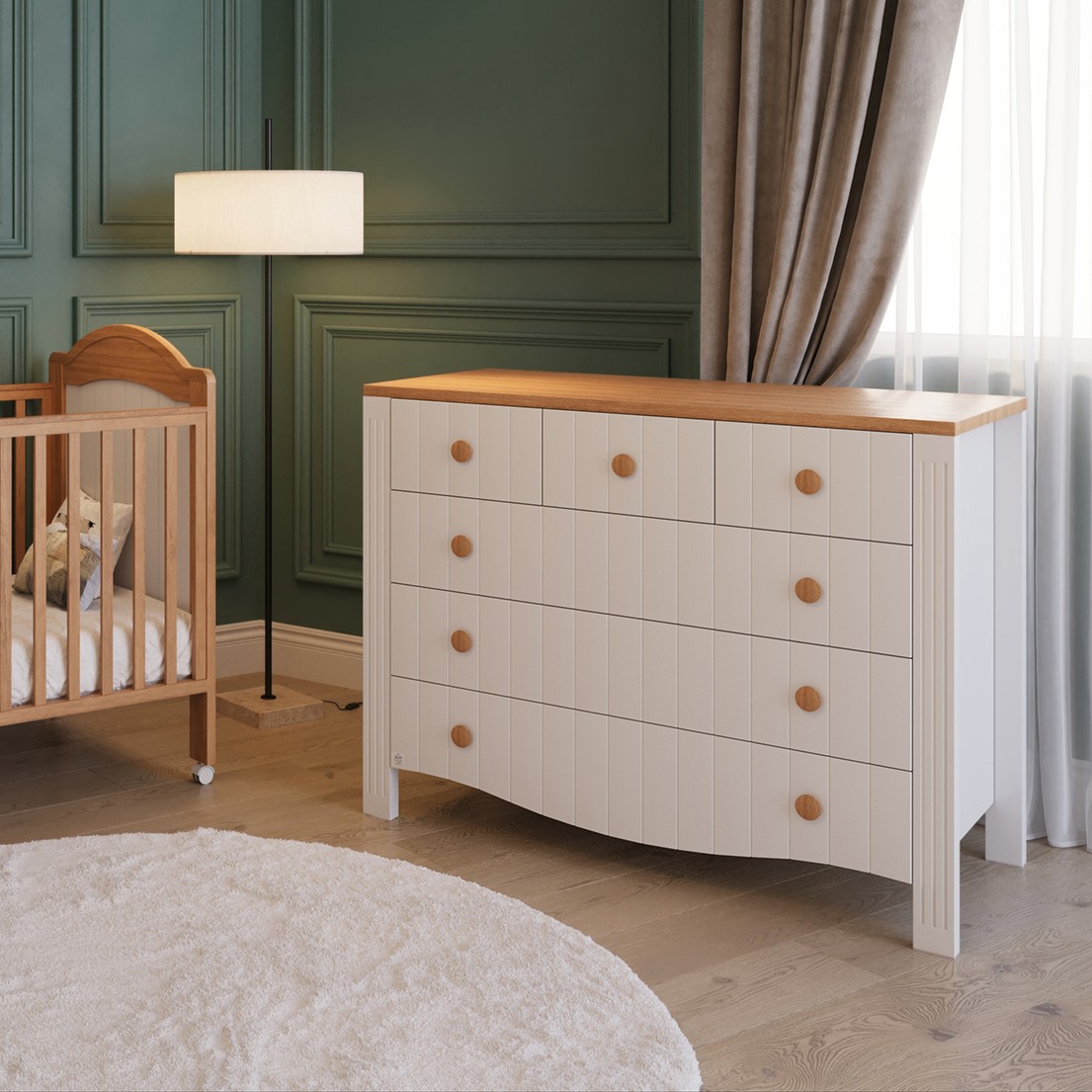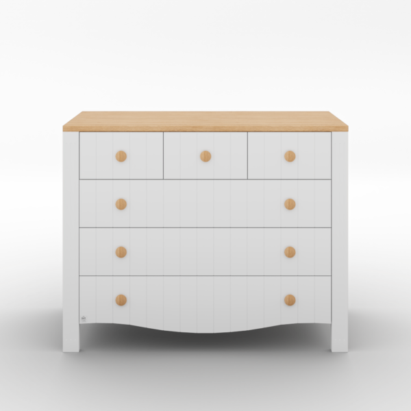 שידת התינוק "תמרה" משלבת עיצוב ייחודי עם איכות בלתי מתפשרת. חזיתות השידה מעוצבות בחריצים מיוחדים בצביעה איכותית בגימור מטאלי נקי ומוקפד, המעניקים לשידה מראה יוקרתי ואלגנטי שמתאים לכל חדר תינוקות. כל הפרטים נבחרו בקפידה כדי לספק מוצר שמחזיק לאורך שנים, עמיד בפני שריטות ונזקים, ומתאים במיוחד לסביבת תינוקות.