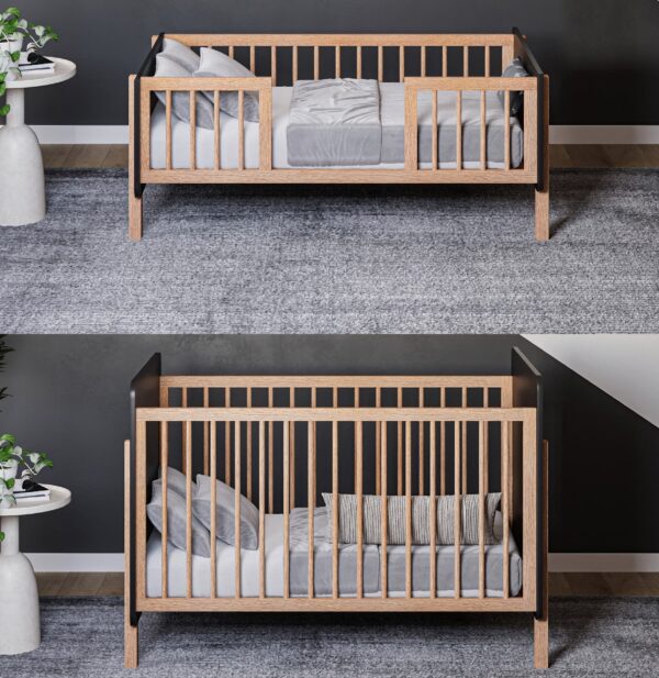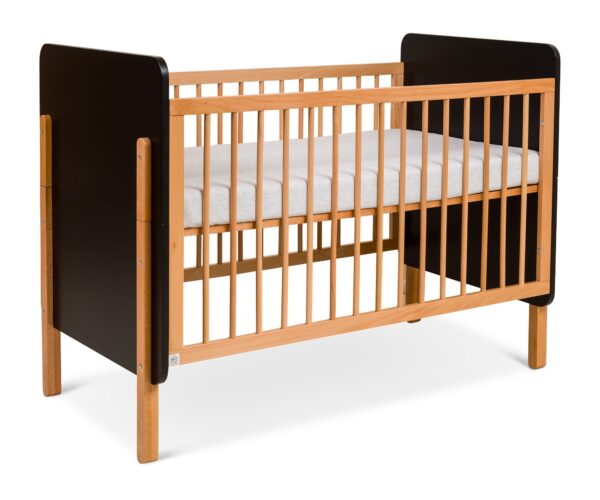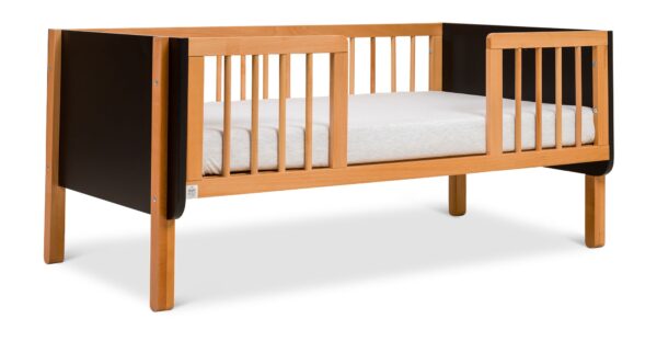 מיטת תינוק 2 ב 1 מעץ בוק מלא+מעבר, כאשר בסיס המיטה מתכוונן ל- 3 מצבי גובה. היא מגיעה עם סולמות מעבר וניתנת לשינוי באופן פשוט וקל. המיטה מגיעה בגוון עץ בוק אשר מתאים למגוון רחב של שידות, עם רגלי עץ בוק מעוצבות המגביהות אותה ומעניקות לה מראה מרשים ודומיננטי. ברגי המיטה פנימיים ואינם נראים לעין.