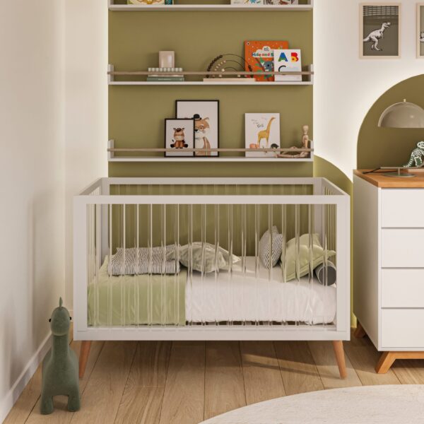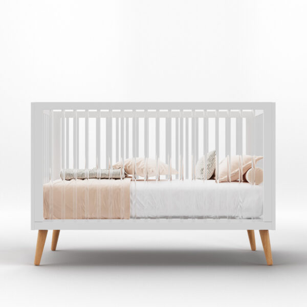 מיטת תינוק כלנית לבן שילוב עץ בוק- מזרן 130/70