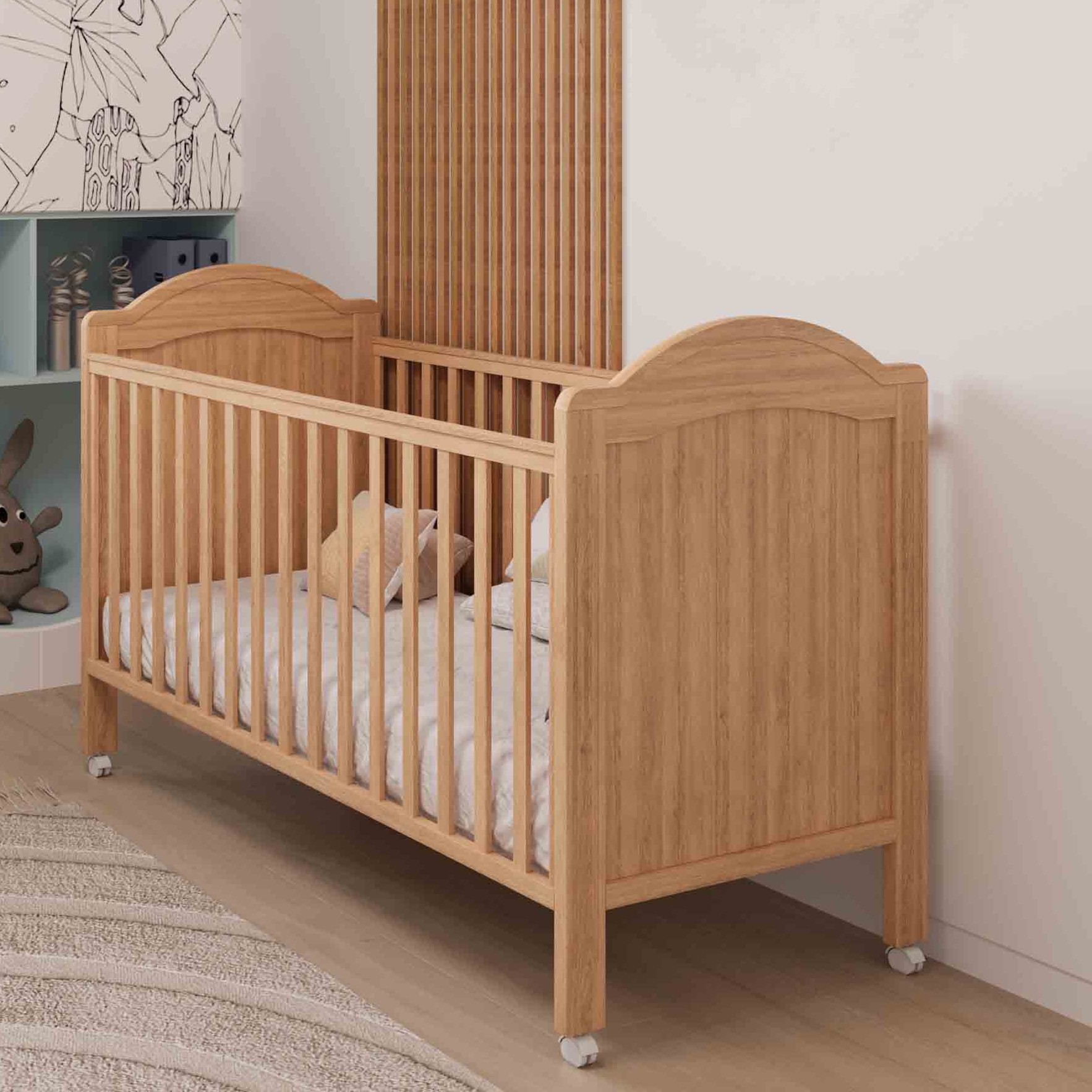 בנוסף ליופיה החזותי, המיטה מתוכננת להעניק נוחות ובטיחות מרביים לתינוק, עם חומרים איכותיים ועמידים המבטיחים שימוש בטוח לאורך זמן. בעידן שבו עיצוב פנים הפך לחלק בלתי נפרד מעולמם של ההורים, מיטה קלאסית עם אלמנטים דקורטיביים כאלה היא תוספת מושלמת לכל חדר ילדים.