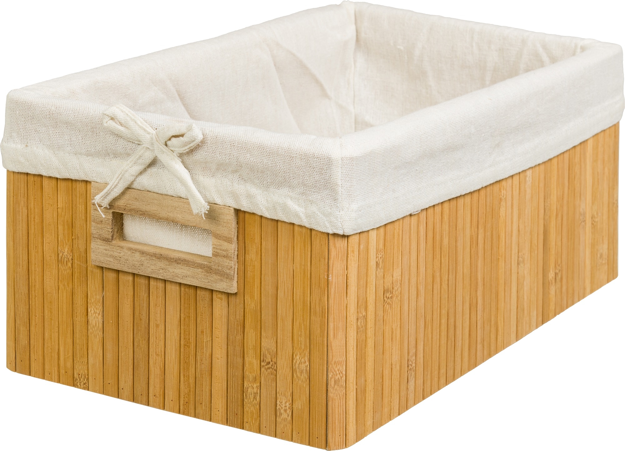 סלסלת אחסון כפרית מהממת שמתאימה לאמבט, לחדר התינוק ולכל מקום. היא עשויה במבוק ובד הניתן לשטיפה.