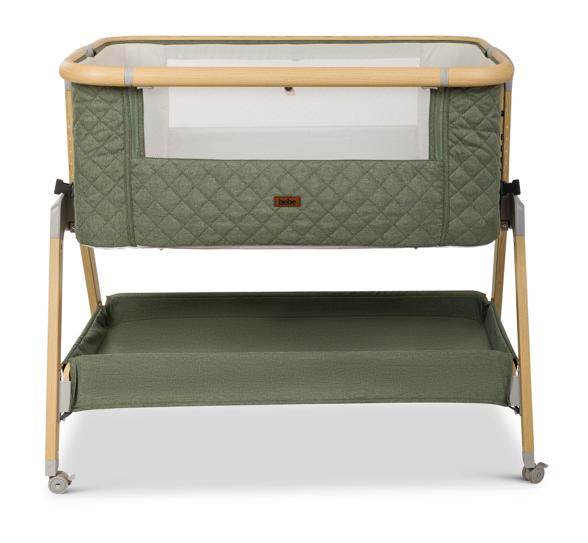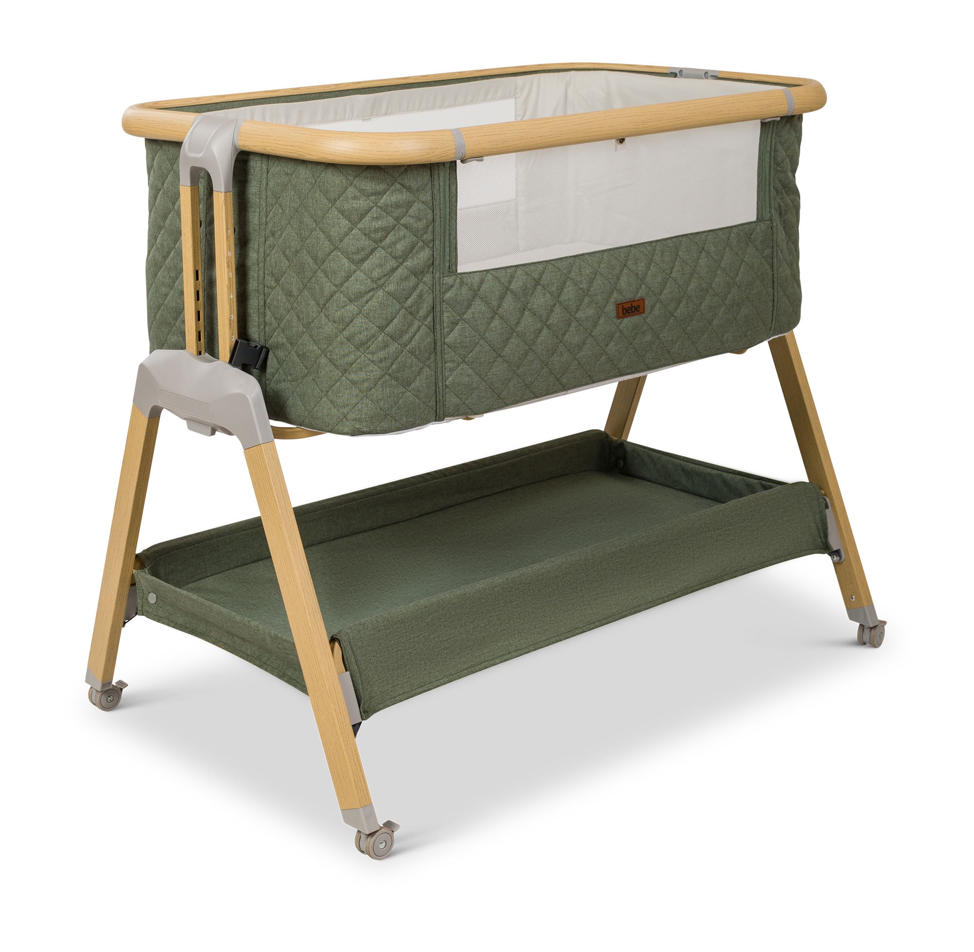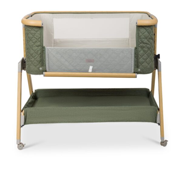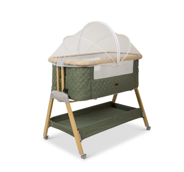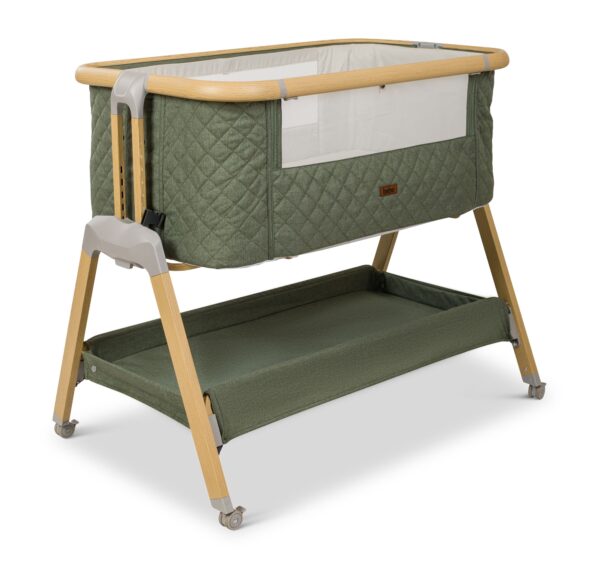 העריסה מגיעה עם שלד מעוצב גימור עץ בשילוב 3 צבעי ריפודים, היא נצמדת למיטת הורים בעזרת רצועות קשירה לבטיחות מרבית ומגיעה עם 7 מצבי גובה הניתנים לשינוי ע"פ הצורך והתאמה לגובה מיטת ההורים. לעריסה גלגלים עם נעילה, דפנות רשת מאפשרות צפייה בתינוק ואוורור רציף, מזרן ומשטח אחסנה גדול במיוחד, רשת יתושים ותיק נשיאה.