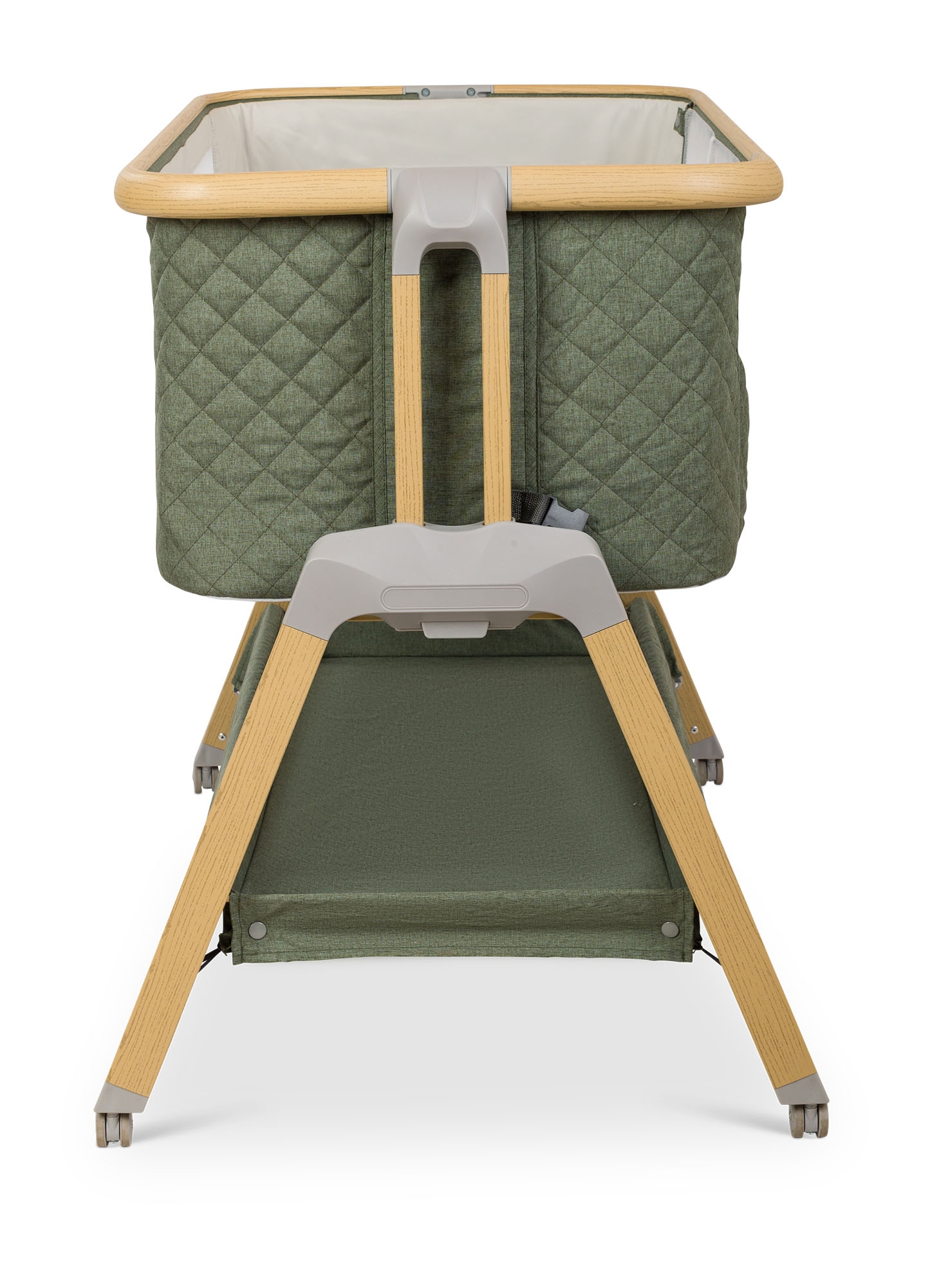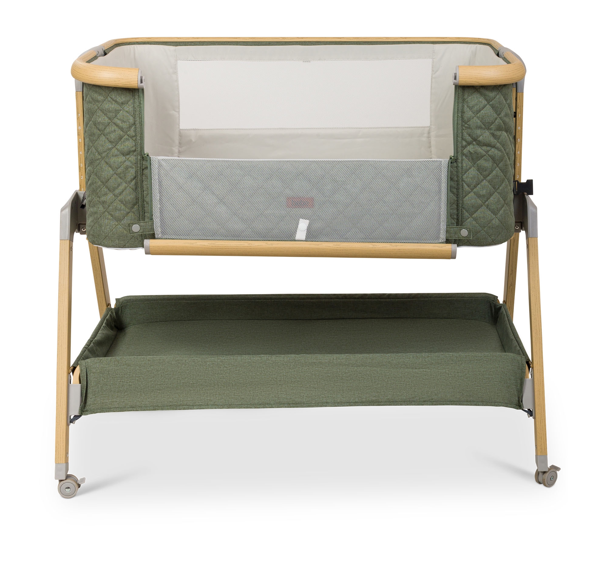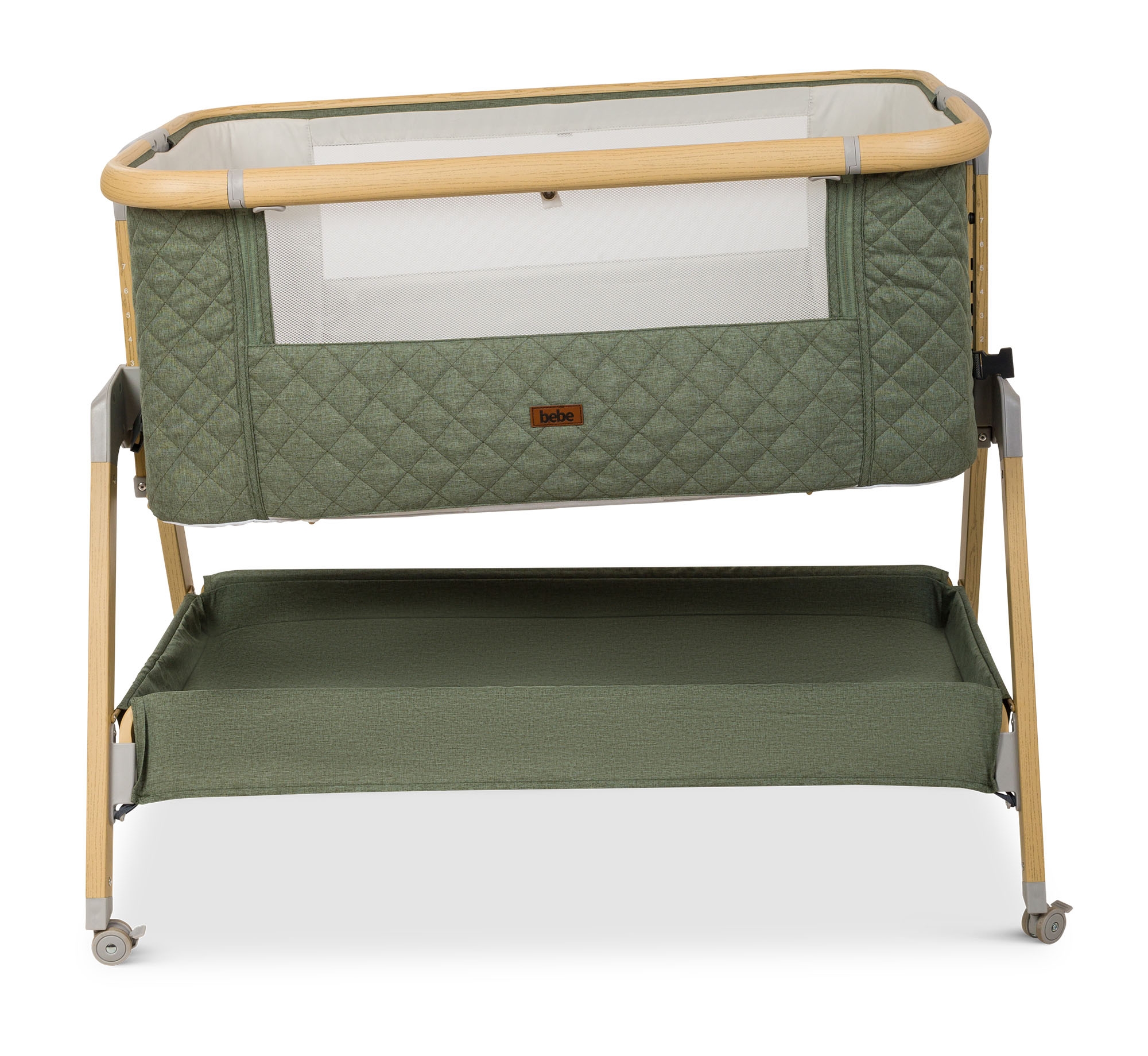העריסה מגיעה עם שלד מעוצב גימור עץ בשילוב 3 צבעי ריפודים, היא נצמדת למיטת הורים בעזרת רצועות קשירה לבטיחות מרבית ומגיעה עם 7 מצבי גובה הניתנים לשינוי ע"פ הצורך והתאמה לגובה מיטת ההורים. לעריסה גלגלים עם נעילה, דפנות רשת מאפשרות צפייה בתינוק ואוורור רציף, מזרן ומשטח אחסנה גדול במיוחד, רשת יתושים ותיק נשיאה.