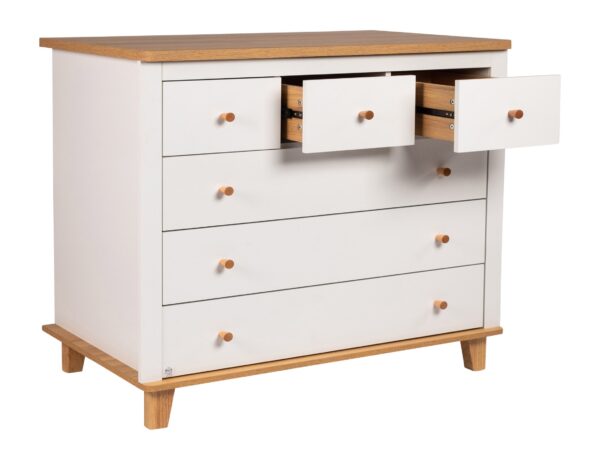 השידה מאובזרת ב -6 מגירות מרווחות בדיוק הגודל הנכון. השורה עליונה מחולקת ל-3 מגירות המאפשרות חלוקה נוחה ותפעול קל ללא צורך בהתרחקות מהשידה בפתיחת המגירות. בשידה מותקנות מסילות לאגר טלסקופיות בעלות כושר נשיאה רב – בדיוק מה שאתם צריכים!
