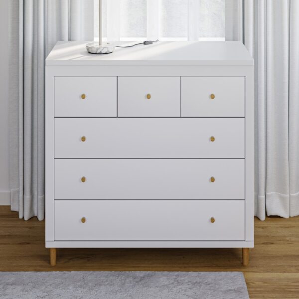 שידת ניו יורק מאובזרת במסילות נסתרות טריקה שקטה אוטומטיות, עם עיצוב קלאסי עדין, 6 מגירות מרווחות ורגליים מעוצבות העשויות עץ בוק מלא. הגוון הלבן בשילוב צבע עץ טבעי מעניק לה מראה ייחודי, בדיוק מה שחיפשתם, נכון?