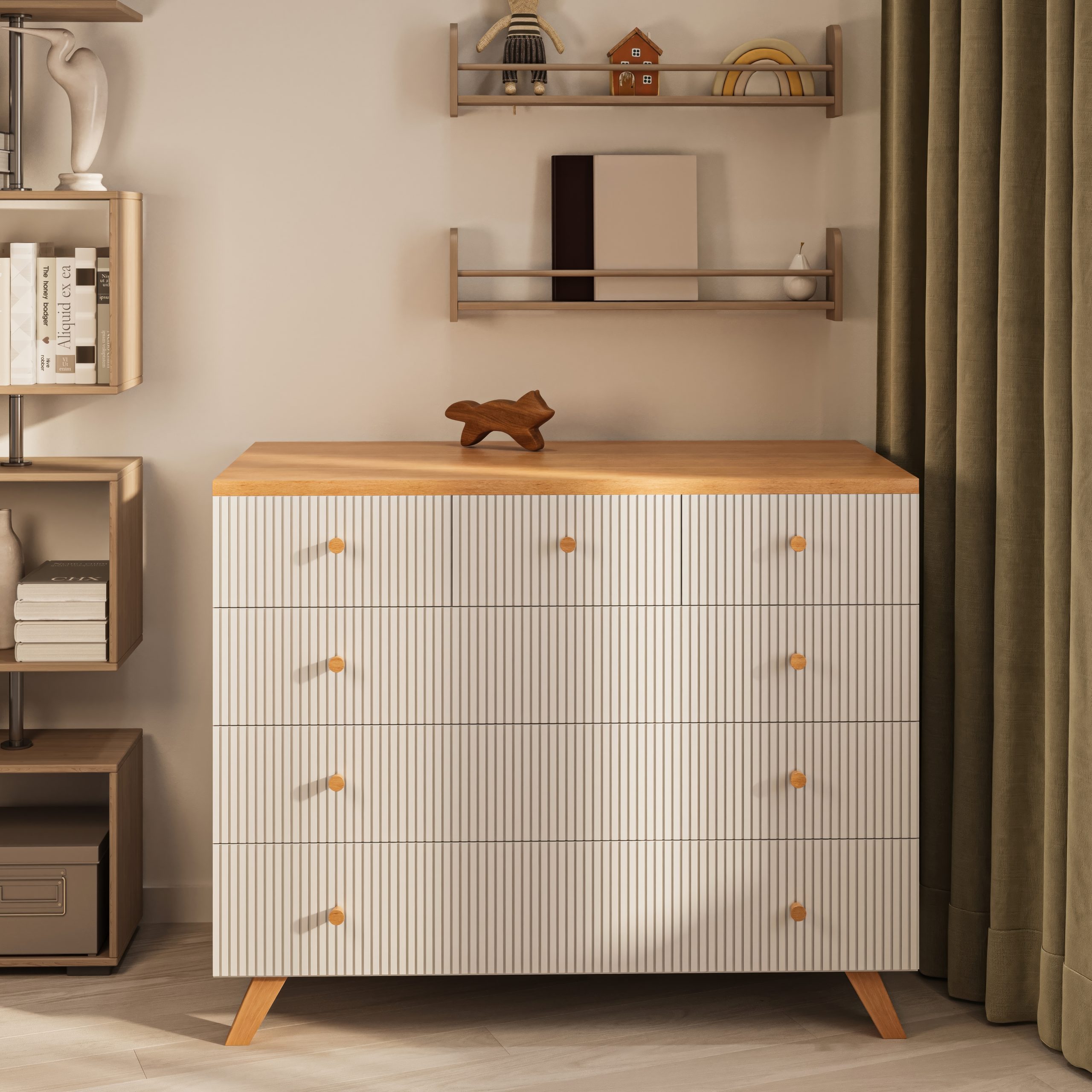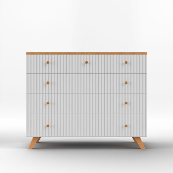 שידת פלמה מביאה סטנדרטים חדשים לעולם עיצוב חדרי ילדים, עם חזיתות מהממות המגיעות עם חריצים לאורך, הרבה שיק וכמובן חלוקה סופר נוחה של המגירות. בקיצור, יש בה הכל! עם מסילות טריקה שקטות כמובן. שניר בייבי מקפידה על איכות גבוהה של חומרים, יחד עם שירות מצוין וזמינות לכל שאלה.