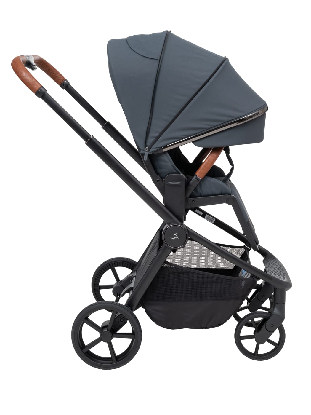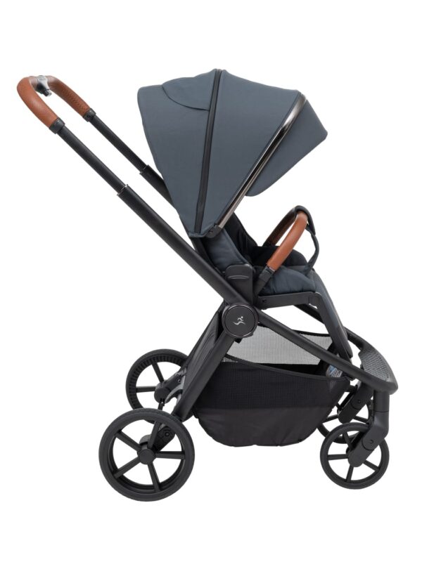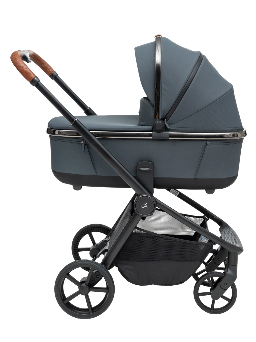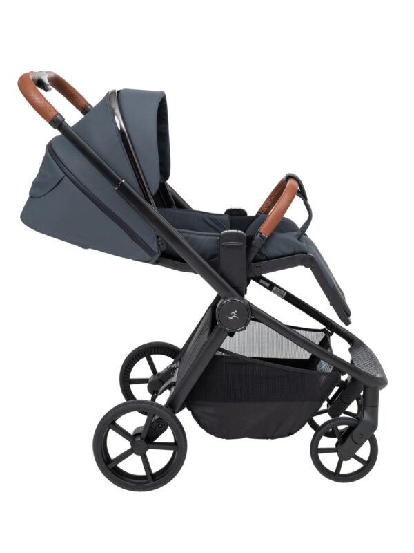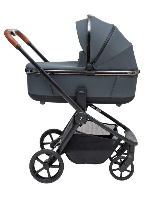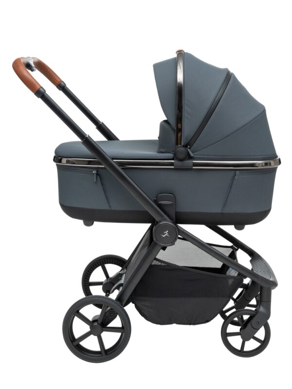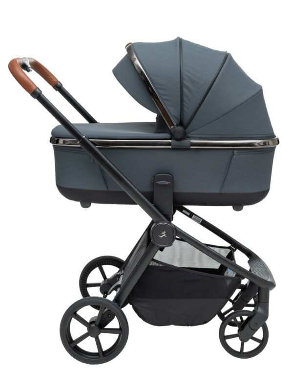 העגלה בעיצוב יוקרתי של כרום שחור לסל השכיבה וגגון הטיולון המעניק לה לוק אלגנטי במיוחד.
